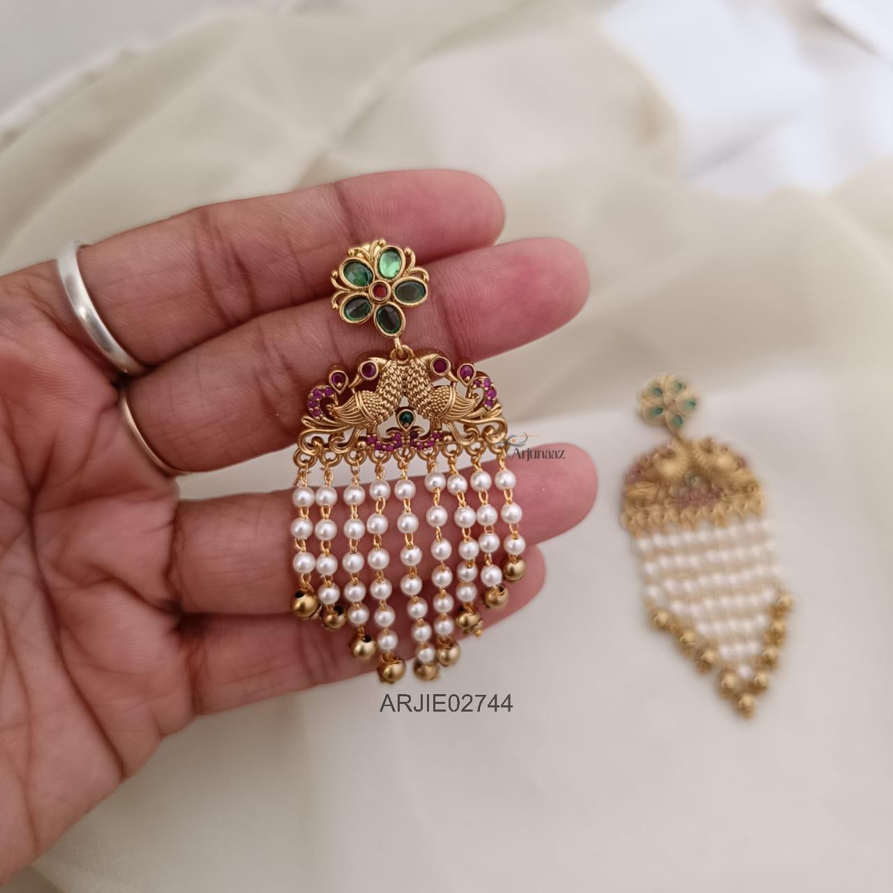 Floral Green Pearl Layered Earrings exude elegance with a fresh, vibrant charm. Featuring intricate floral motifs and layers of soft, green pearls, they offer a graceful blend of tradition and style.