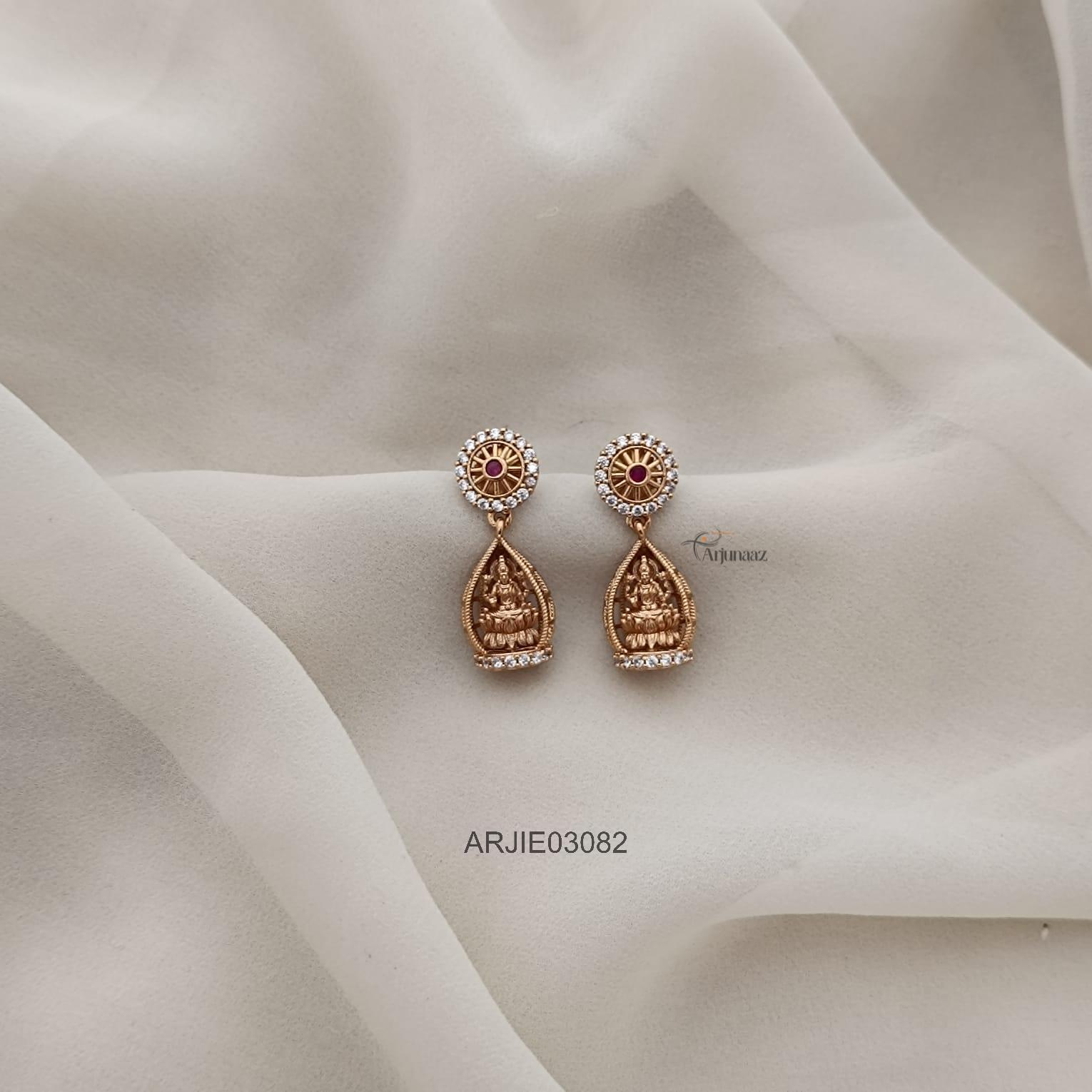 Ruby and White Lakshmi Earrings beautifully combine tradition and elegance, featuring Goddess Lakshmi motifs adorned with rich ruby and sparkling white stones.